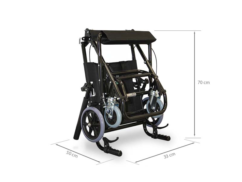 The 4 solid wheels are synonymous with durability and reduced maintenance. The rear wheels, fixed and robust, work in harmony with the 360º rotating front wheels, offering total control and maneuverability to the passenger.